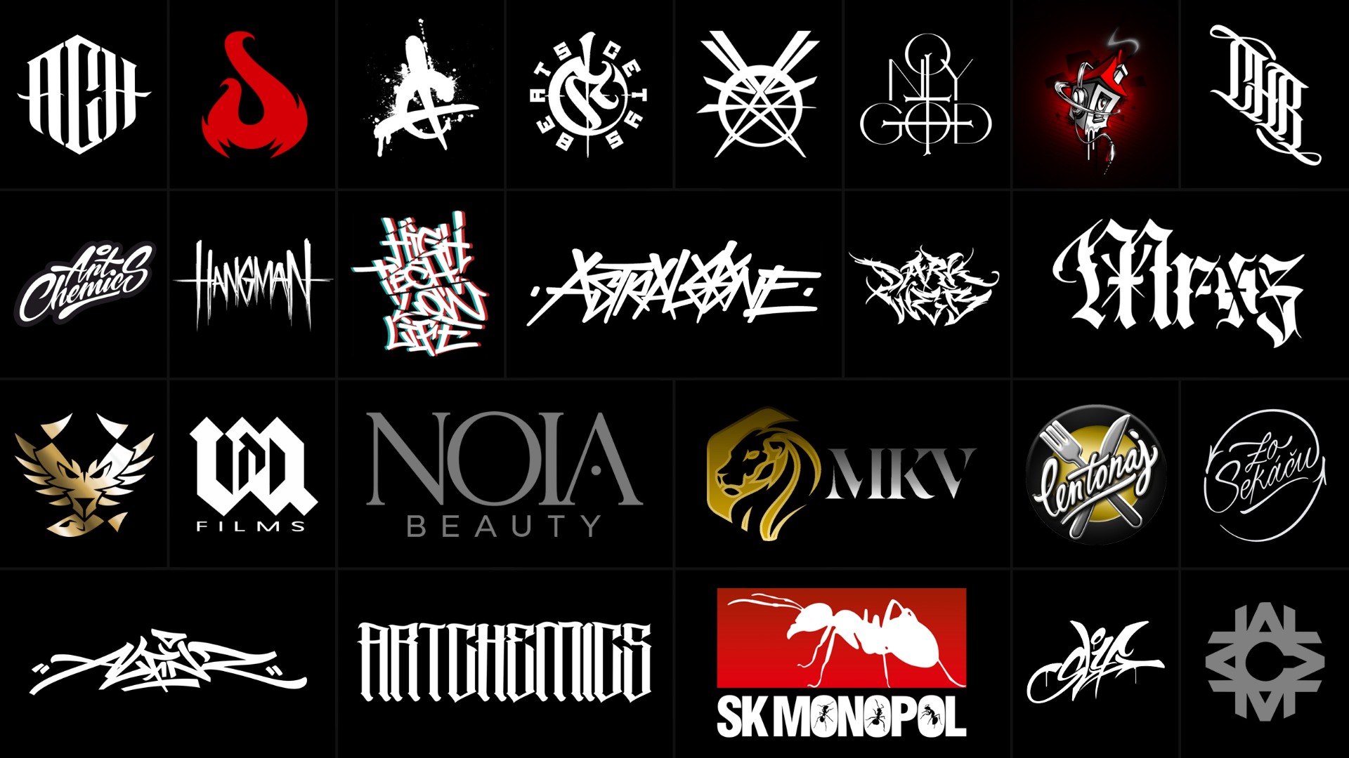 Malá vzorka navrhnutých log pre firmy, hudobníkov, kamarátov a mnoho ďalších.